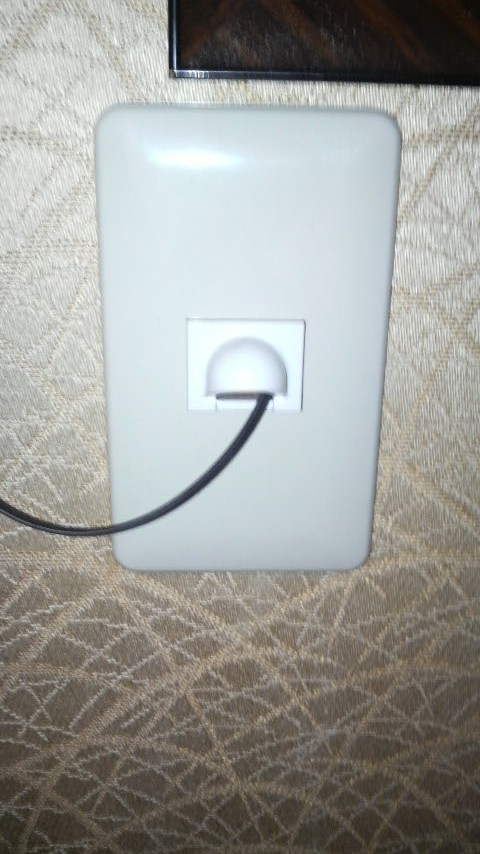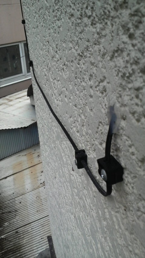 はじめは、電話線が通ってる管に通す予定だったのですがどうも、穴が開いてなかったらしく、結局壁に穴あけて直接引き込みになりました。